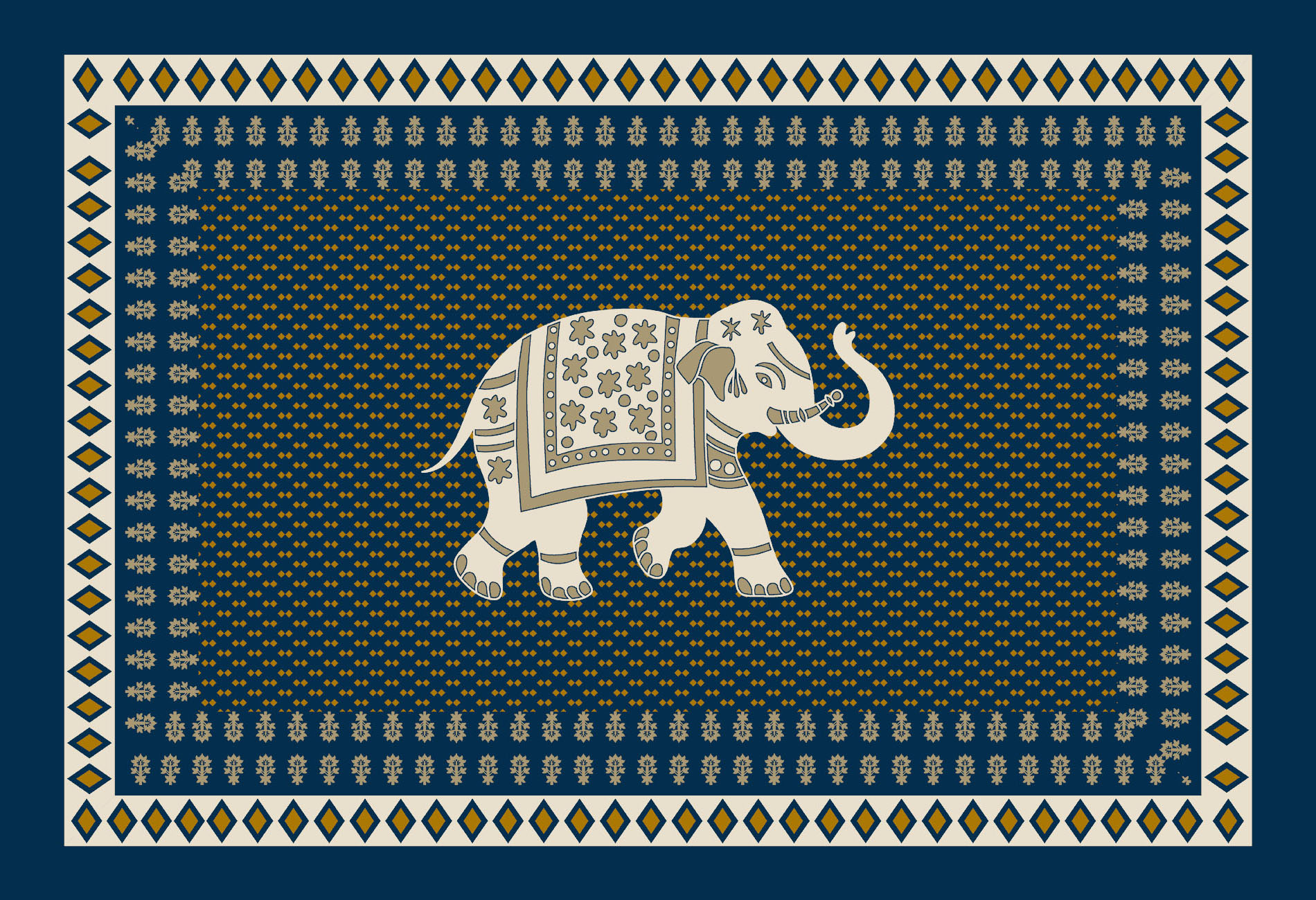 Ajrakh Elephant Royal Bedsheet